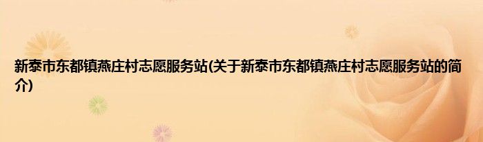 本文关于新泰市东都镇燕庄村志愿服务站的简介就讲解完毕,希望对大家有所帮助。