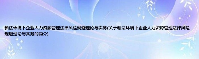本文关于新法环境下企业人力资源管理法律风险规避理论与实务的简介就讲解完毕,希望对大家有所帮助。