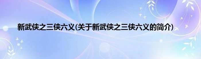 大家好,新武侠之三侠六义,关于新武侠之三侠六义的简介很多人还不知道,现在让我们一起来看看吧!