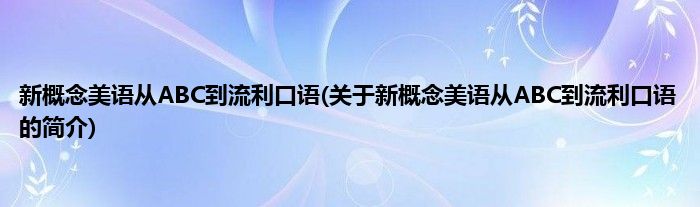 本文关于新概念美语从ABC到流利口语的简介就讲解完毕,希望对大家有所帮助。
