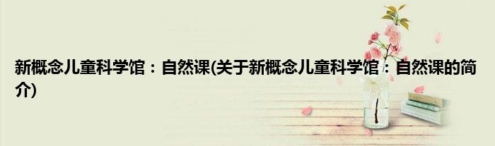 本文关于新概念儿童科学馆:自然课的简介就讲解完毕,希望对大家有所帮助。