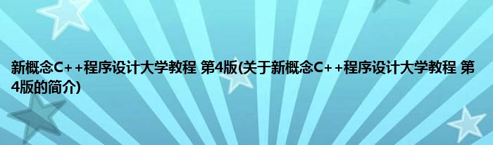 本文关于新概念C++程序设计大学教程 第4版的简介就讲解完毕,希望对大家有所帮助。