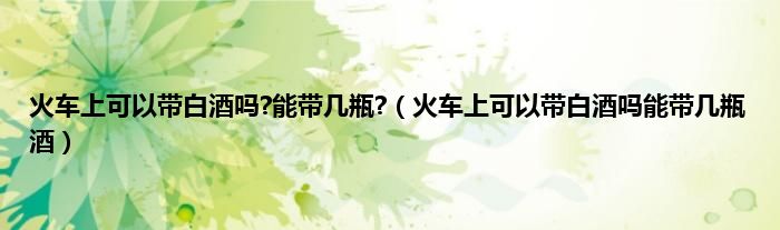大家好,小科来为大家解答以上问题。火车上可以带白酒吗?能带几瓶?,火车上可以带白酒吗能带几瓶酒很多人还不知道,现在让我们一起来看看吧!