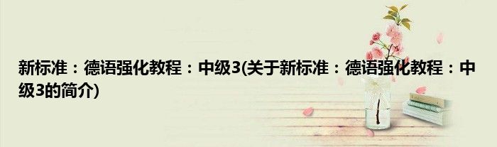 本文关于新标准:德语强化教程:中级3的简介就讲解完毕,希望对大家有所帮助。