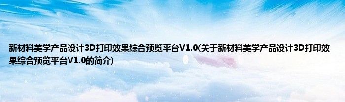 新材料美学产品设计3D打印效果综合预览平台V1.0(关于新材料美学产品设计3D打印效果综合预览平台V1.0的简介)