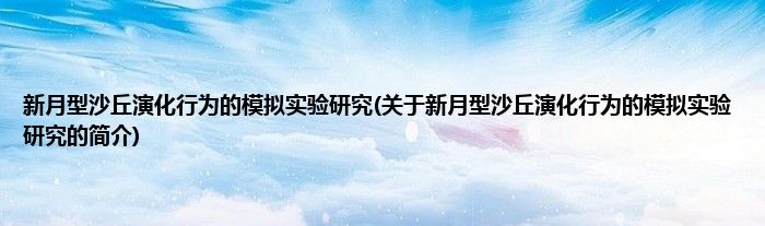 大家好,新月型沙丘演化行为的模拟实验研究,关于新月型沙丘演化行为的模拟实验研究的简介很多人还不知道,现在让我们一起来看看吧!