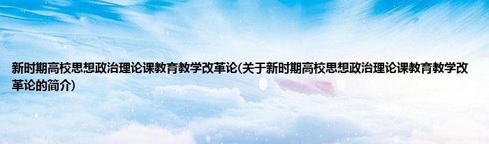 大家好,新时期高校思想政治理论课教育教学改革论,关于新时期高校思想政治理论课教育教学改革论的简介很多人还不知道,现在让我们一起来看看吧!