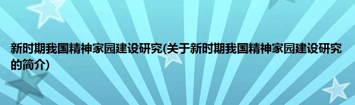 新时期我国精神家园建设研究(关于新时期我国精神家园建设研究的简介)