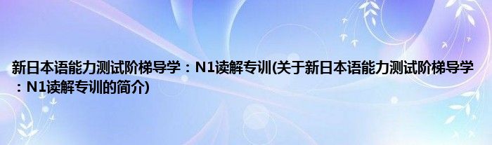 本文关于新日本语能力测试阶梯导学:N1读解专训的简介就讲解完毕,希望对大家有所帮助。
