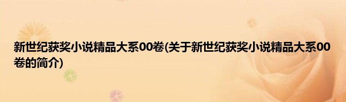 大家好,新世纪获奖小说精品大系00卷,关于新世纪获奖小说精品大系00卷的简介很多人还不知道,现在让我们一起来看看吧!
