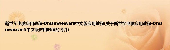 大家好,新世纪电脑应用教程·Dreamweaver8中文版应用教程,关于新世纪电脑应用教程·Dreamweaver8中文版应用教程的简介很多人还不知道,现在让我们一起来看看吧!
