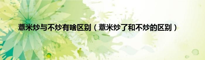 一、 薏米炒了和不炒的区别
