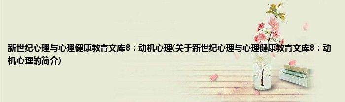 本文关于新世纪心理与心理健康教育文库8:动机心理的简介就讲解完毕,希望对大家有所帮助。