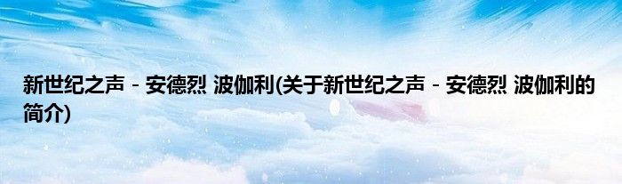 大家好,新世纪之声-安德烈。波伽利,关于新世纪之声-安德烈。波伽利的简介很多人还不知道,现在让我们一起来看看吧!