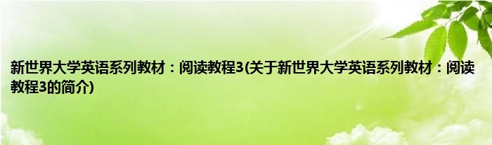 本文关于新世界大学英语系列教材:阅读教程3的简介就讲解完毕,希望对大家有所帮助。