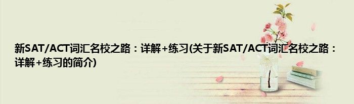 大家好,新SAT/ACT词汇名校之路:详解+练习,关于新SAT/ACT词汇名校之路:详解+练习的简介很多人还不知道,现在让我们一起来看看吧!