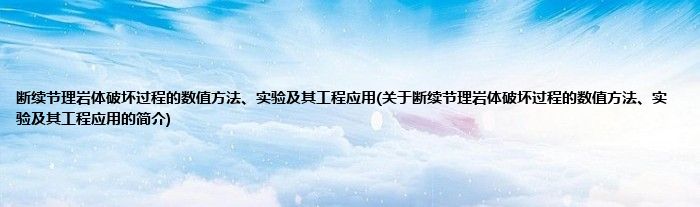 大家好,断续节理岩体破坏过程的数值方法、实验及其工程应用,关于断续节理岩体破坏过程的数值方法、实验及其工程应用的简介很多人还不知道,现在让我们一起来看看吧!