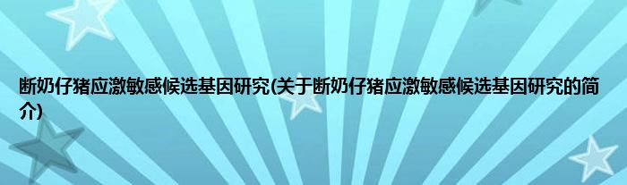 大家好,断奶仔猪应激敏感候选基因研究,关于断奶仔猪应激敏感候选基因研究的简介很多人还不知道,现在让我们一起来看看吧!