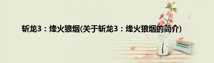 大家好,斩龙3:烽火狼烟,关于斩龙3:烽火狼烟的简介很多人还不知道,现在让我们一起来看看吧!