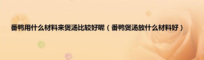 大家好,小科来为大家解答以上问题。番鸭用什么材料来煲汤比较好呢,番鸭煲汤放什么材料好很多人还不知道,现在让我们一起来看看吧!