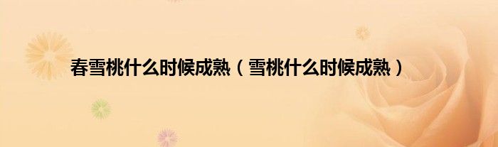 一、 雪桃什么时候成熟
