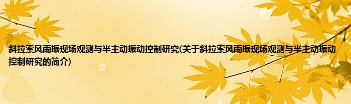 本文关于斜拉索风雨振现场观测与半主动振动控制研究的简介就讲解完毕,希望对大家有所帮助。