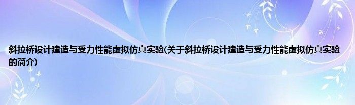 大家好,斜拉桥设计建造与受力性能虚拟仿真实验,关于斜拉桥设计建造与受力性能虚拟仿真实验的简介很多人还不知道,现在让我们一起来看看吧!