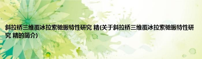 本文关于斜拉桥三维覆冰拉索驰振特性研究 精的简介就讲解完毕,希望对大家有所帮助。
