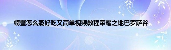 大家好,小科来为大家解答以上问题。螃蟹怎么蒸好吃又简单视频教程荣耀之地巴罗萨谷很多人还不知道,现在让我们一起来看看吧!
