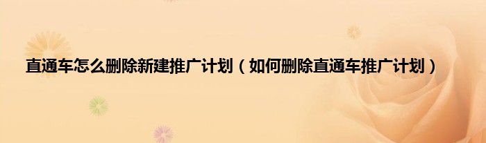 直通车怎么删除新建推广计划(如何删除直通车推广计划)