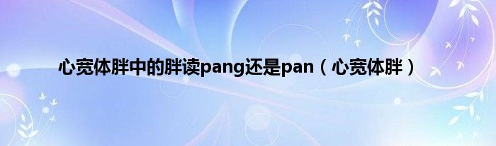 大家好,精选小编来为大家解答以上问题。心宽体胖中的胖读pang还是pan,心宽体胖很多人还不知道,现在让我们一起来看看吧!