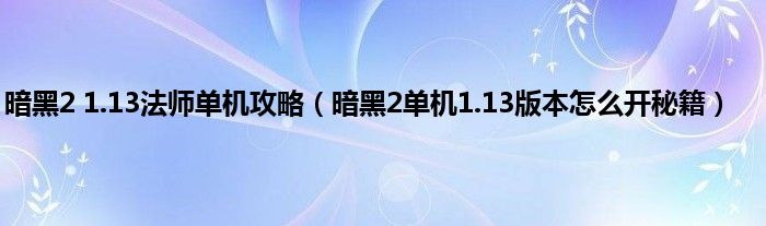 大家好,小常来为大家解答以上问题。暗黑2 1.13法师单机攻略,暗黑2单机1.13版本怎么开秘籍很多人还不知道,现在让我们一起来看看吧!