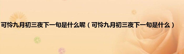 大家好,小常来为大家解答以上问题。可怜九月初三夜下一句是什么呢,可怜九月初三夜下一句是什么很多人还不知道,现在让我们一起来看看吧!