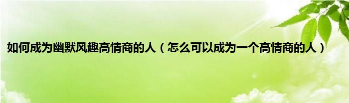 大家好,小常来为大家解答以上问题。如何成为幽默风趣高情商的人,怎么可以成为一个高情商的人很多人还不知道,现在让我们一起来看看吧!