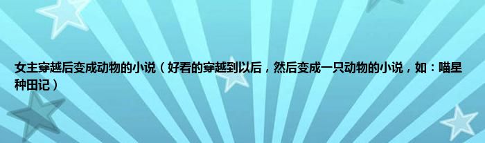 大家好,小常来为大家解答以上问题。女主穿越后变成动物的小说,好看的穿越到以后,然后变成一只动物的小说,如:喵星种田记很多人还不知道,现在让我们一起来看看吧!