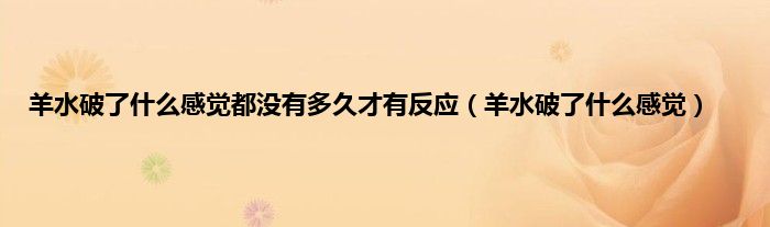 大家好,小科来为大家解答以上问题。羊水破了什么感觉都没有多久才有反应,羊水破了什么感觉很多人还不知道,现在让我们一起来看看吧!