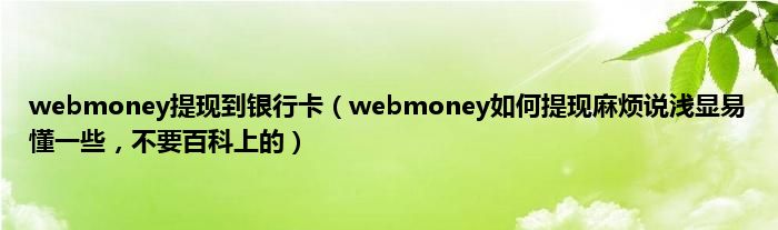 大家好,小常来为大家解答以上问题。webmoney提现到银行卡,webmoney如何提现麻烦说浅显易懂一些,不要百科上的很多人还不知道,现在让我们一起来看看吧!