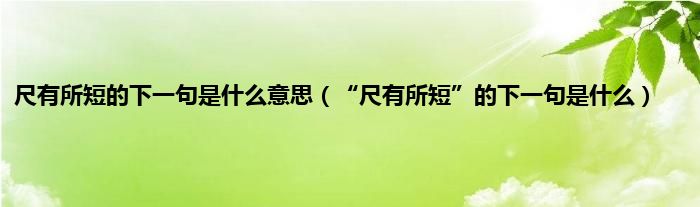 尺有所短的下一句是寸有所长。意思:比喻人或事物各有其长处和短处。出自:屈原·战国《楚辞·卜居》:“夫尺有所短,寸有所长,物有所不足,智有所不明,数有所不逮,神有所不通。”译文:所谓尺有它不足的地方,一寸有觉其够长之时,任何事物都有不足的地方,智慧有它不能明白的问题,占卜也有不能解答的问题,神仙有时也有不知道的事情。近义词:美中不足、白璧微瑕、金无足赤扩展资料:美中不足【解释】:大体很好,但还有不足。【出自】:明·凌濛初《初刻拍案惊奇》卷二十七:“破镜重圆,离而复合,固是好事;但王夫人所遭不幸,失身为妾,又不曾根究奸人,报仇雪恨,尚为美中不足。”【译文】:破镜重圆,离开后又合,固然是好事;但王夫人所遭遇不幸,失身为妾,又不曾查问奸邪的人,报了仇雪恨,大体很好,但还有不足。白璧微瑕【解释】:洁白的玉上有些小斑点。比喻很好的人或物有些小缺点,美中不足。【出自】:南朝·梁·萧统《陶渊明集序》:“白璧微瑕,惟在《闲情》一赋。”【译文】:洁白的玉上有些小斑点,只有在《闲情》赋。金无足赤【解释】:足赤:成色十足的金子。比喻人也不能十全十美。【出自】:宋·戴复古《寄兴》:“黄金无足色,白璧有微瑕。求人不求备,妾愿老君家。”【译文】:黄金没有什么颜色,上有瑕疵。请求人不求完备,我希望老君家。
