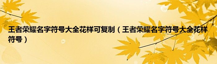 大家好,小常来为大家解答以上问题。王者荣耀名字符号大全花样可复制,王者荣耀名字符号大全花样符号很多人还不知道,现在让我们一起来看看吧!
