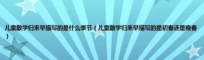 大家好,小常来为大家解答以上问题。儿童散学归来早描写的是什么季节,儿童散学归来早描写的是初春还是晚春很多人还不知道,现在让我们一起来看看吧!
