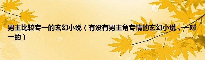 大家好,小常来为大家解答以上问题。男主比较专一的玄幻小说,有没有男主角专情的玄幻小说,一对一的很多人还不知道,现在让我们一起来看看吧!