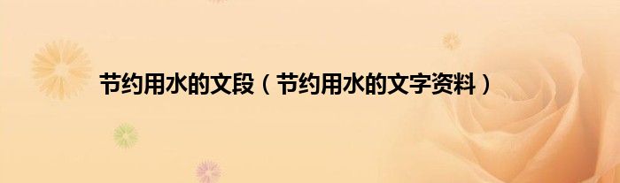大家好,小常来为大家解答以上问题。节约用水的文段,节约用水的文字资料很多人还不知道,现在让我们一起来看看吧!