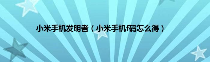 大家好,小常来为大家解答以上问题。小米手机发明者,小米手机f码怎么得很多人还不知道,现在让我们一起来看看吧!