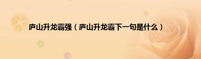 大家好,小常来为大家解答以上问题。庐山升龙霸强,庐山升龙霸下一句是什么很多人还不知道,现在让我们一起来看看吧!
