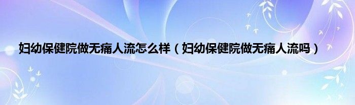 大家好,小科来为大家解答以上问题。妇幼保健院做无痛人流怎么样,妇幼保健院做无痛人流吗很多人还不知道,现在让我们一起来看看吧!