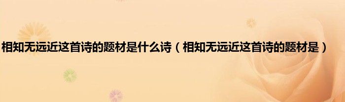 大家好,小常来为大家解答以上问题。相知无远近这首诗的题材是什么诗,相知无远近这首诗的题材是很多人还不知道,现在让我们一起来看看吧!