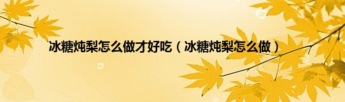大家好,小科来为大家解答以上问题。冰糖炖梨怎么做才好吃,冰糖炖梨怎么做很多人还不知道,现在让我们一起来看看吧!