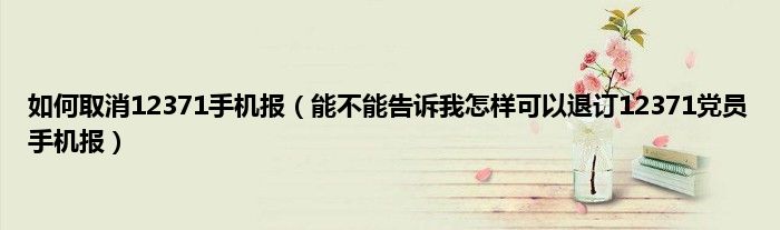 大家好,小常来为大家解答以上问题。如何取消12371手机报,能不能告诉我怎样可以退订12371党员手机报很多人还不知道,现在让我们一起来看看吧!