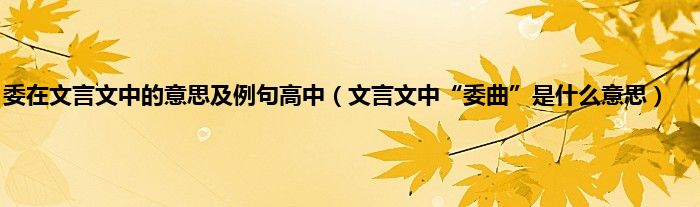 大家好,小常来为大家解答以上问题。委在文言文中的意思及例句高中,文言文中“委曲”是什么意思很多人还不知道,现在让我们一起来看看吧!