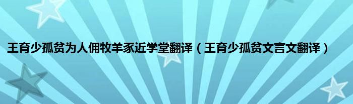 大家好,小常来为大家解答以上问题。王育少孤贫为人佣牧羊豕近学堂翻译,王育少孤贫文言文翻译很多人还不知道,现在让我们一起来看看吧!